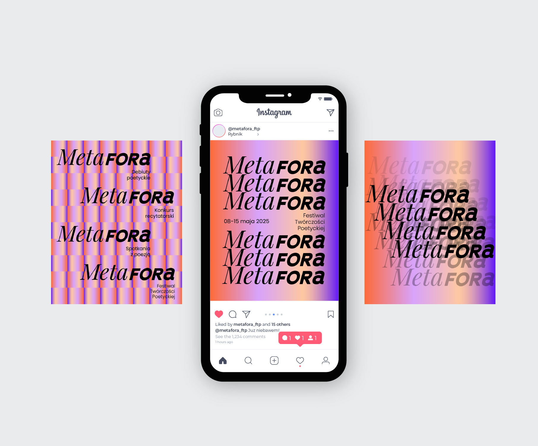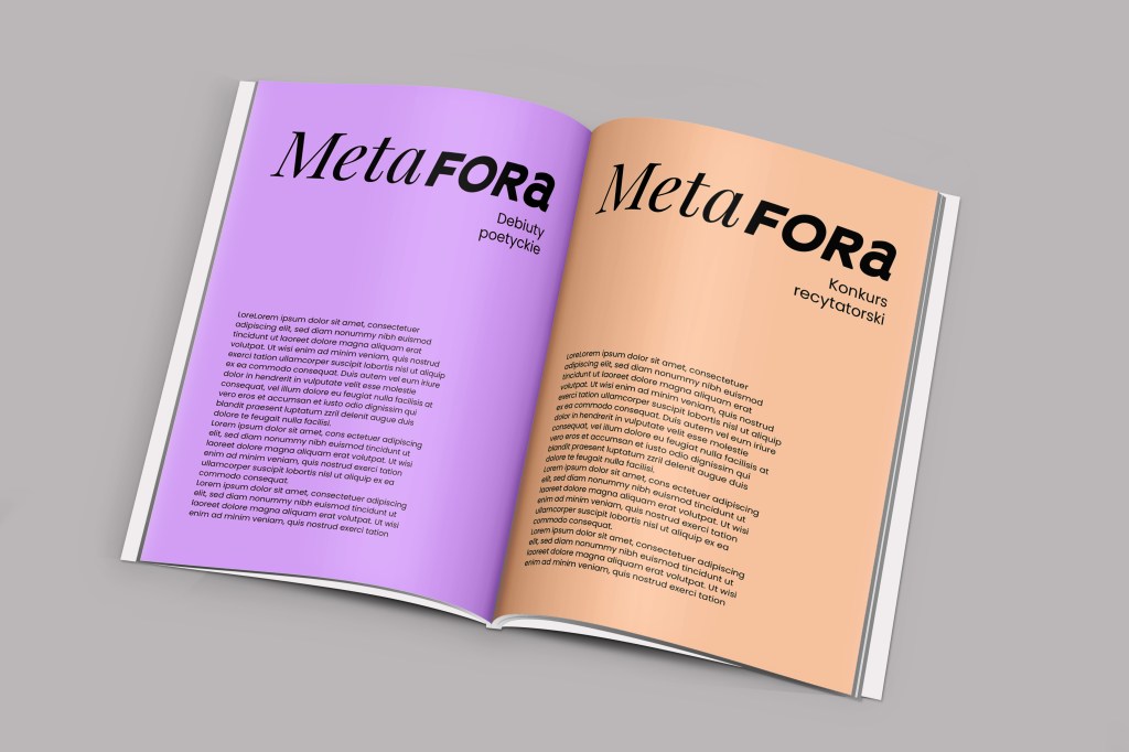 Inspiracją i zalążkiem pomysłu na identyfikację wizualną dla Festiwalu Twórczości Poetyckiej stało się hasło przewodnie tej imprezy, czyli METAFORA. Ten środek stylistyczny zwany również przenośnią, polega na zestawianiu ze sobą dwóch lub większej ilości z pozoru niepasujących do siebie słów, tworząc tym samym nowe niedosłowne znaczenie. Przykładem metafory jest wyrażenia np.: stalowe nerwy.
